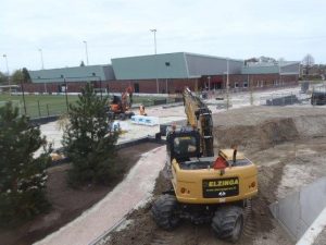Voor dit project heeft Elzinga alle infra mogen aanleggen voor de Gemeente Eemsmond. De speeltoestellen worden op een later moment aangebracht door een derde partij. Wat dit project bijzonder maakt voor Elzinga is onder andere het gebruik van verschillende materialen. Een voorbeeld hiervan is de Terre Armee-wand bij de speelheuvel op de Roegte. De Terre Armee-wand wordt normaal gesproken namelijk gebruikt voor de bouw van bijvoorbeeld een viaduct. Dit aspect geeft een ruige/ stoere kant aan de ontmoetingsplek. Interessant is dat deze wand in zijn totaliteit 4 meter hoog is, waar deze normaliter voor een viaduct wel 40 meter hoog kan zijn. Daarnaast is er voor een deel van De Strip en Roegte gebruik gemaakt van betonnen tegels. Deze tegels zijn machinaal gelegd, aangezien deze 90x90x8cm grote tegels 155 kilo (!) per stuk wegen. Gezien de toepassing van vele verschillende materialen, in een betrekkelijk klein gebied waar veel (school)kinderen zich bevinden, was het niet alleen een heel bewerkelijke klus, maar ook logistiek een uitdaging.